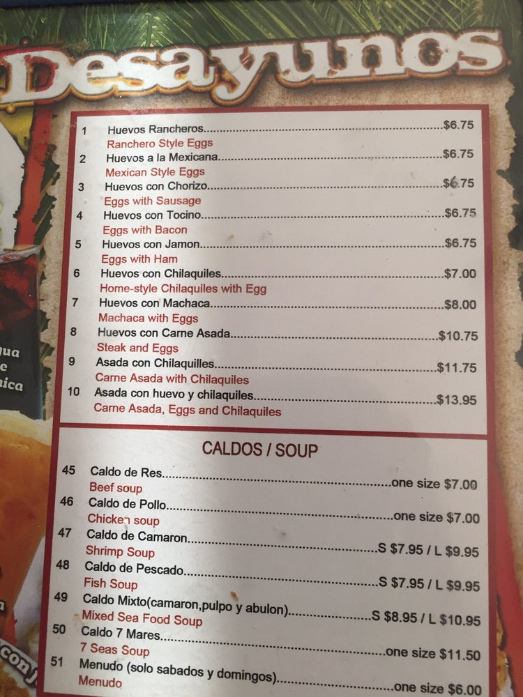 Marisco’s Miramar Menu